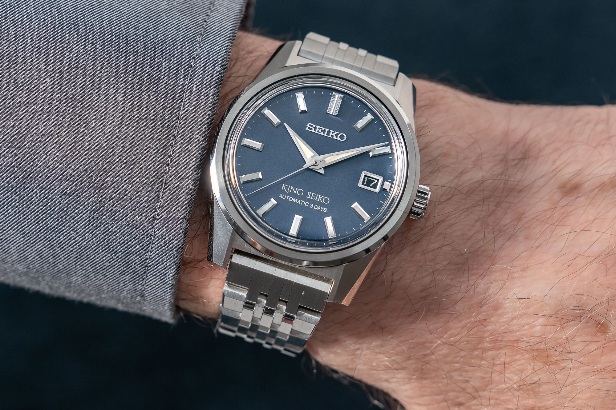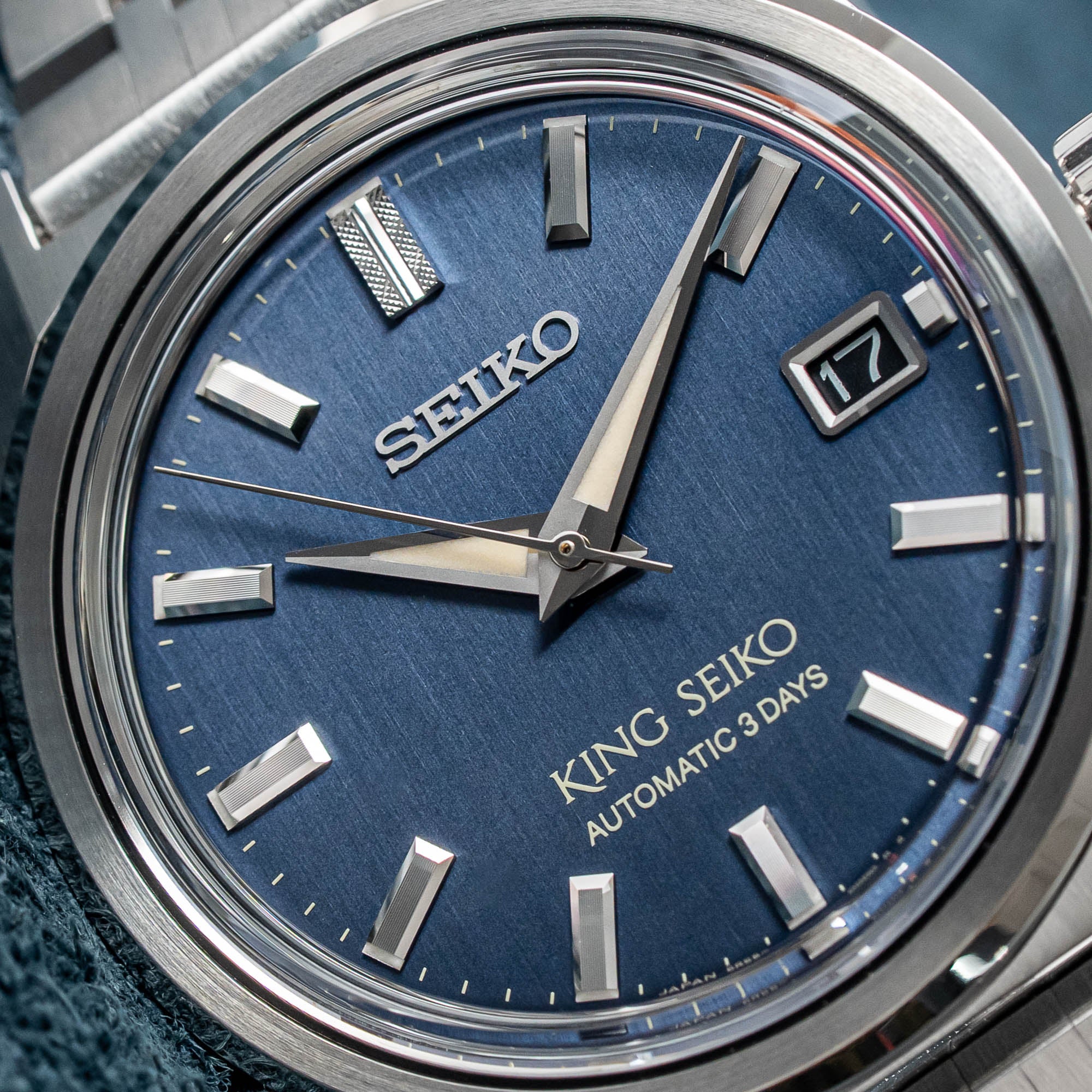 من این صفحه را دوست دارم. به جای تلاش برای بازنگری صفحه‌ای خاص از یک عضو خاص خانواده، King Seiko به دوران خود بازمی‌گردد و صفحه‌ای فوق‌العاده قدیمی با الهام از فرهنگ و روندهای دهه ۱۹۶۰ و ۱۹۷۰ توکیو خلق می‌کند. SPB389 دارای صفحه آبی فلزی با اتمام خطی عمودی است که به طرز مؤثری شبیه به یک پارچه جین خوب حفظ شده است.