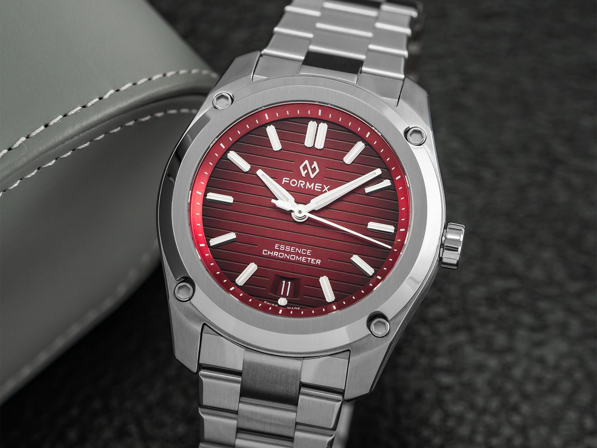 قیمت: 2,090 دلار، اندازه قاب: 39 میلیمتر، ضخامت: 10 میلیمتر، مقاومت در برابر آب: 100 متر، شیشه: یاقوت کبود، حرکت: خودکار Sellita SW200-1. این مدل برند سوئیسی Formex (فورمکس) با طراحی ساده اما پیچیده خود و صفحه قرمز ‘Gamaret’ (گامارت) ظاهری دلپذیر دارد که بر لطف الگوهای خط افقی تاکید میکند.