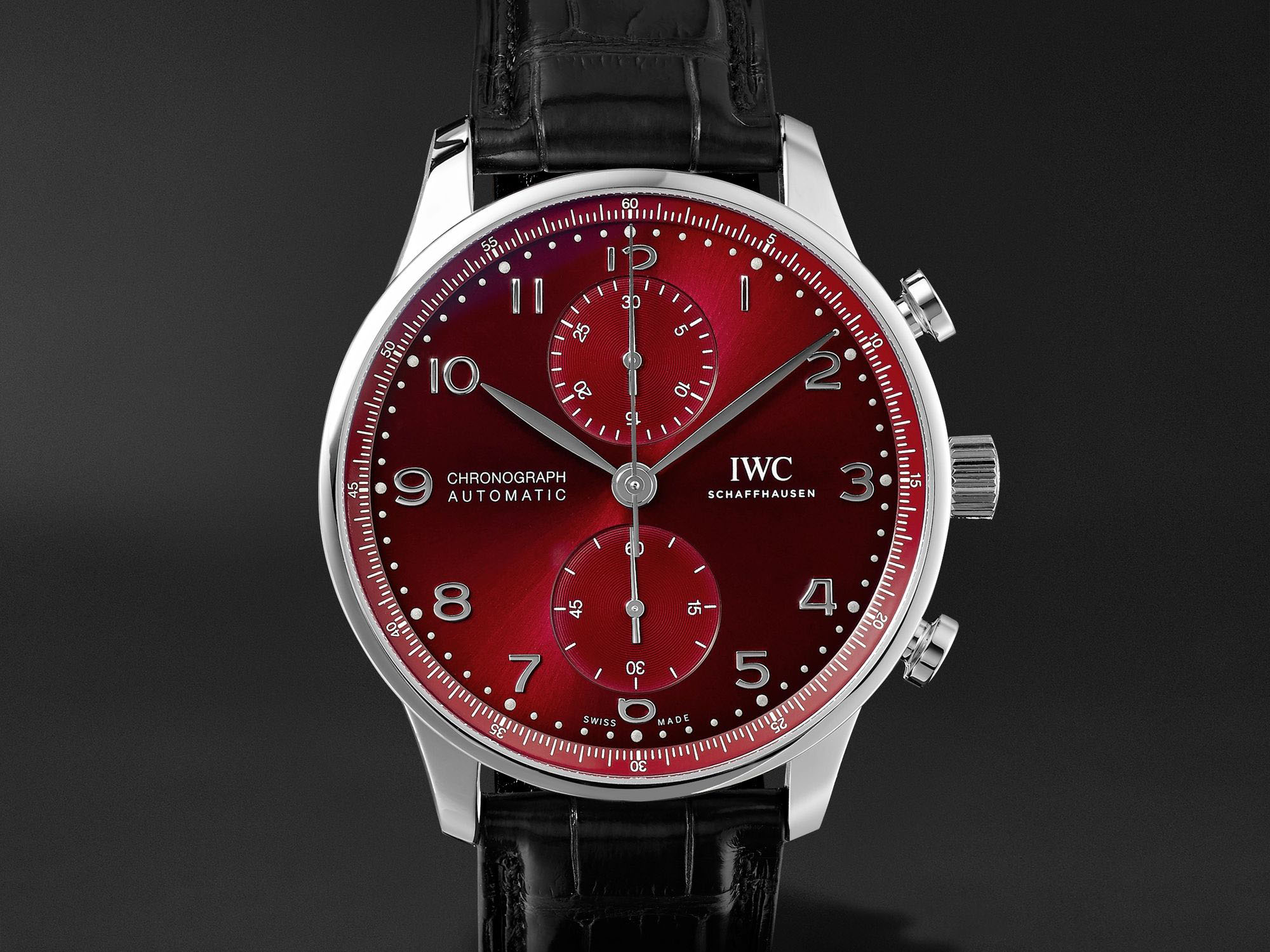 قیمت: 8,400 دلار، اندازه قاب: 41 میلیمتر، ضخامت: 13 میلیمتر، شیشه: یاقوت کبود، مقاومت در برابر آب: 30 متر، حرکت: خودکار IWC 69355. IWC (آیدبلیوسی) با مدل Portugieser Chronograph (پرتوگیزر کرونوگراف) طراحیهای کلاسیک و زماندار را با رنگهای مدرن و جزئیات دقیق ارائه کردهاست.