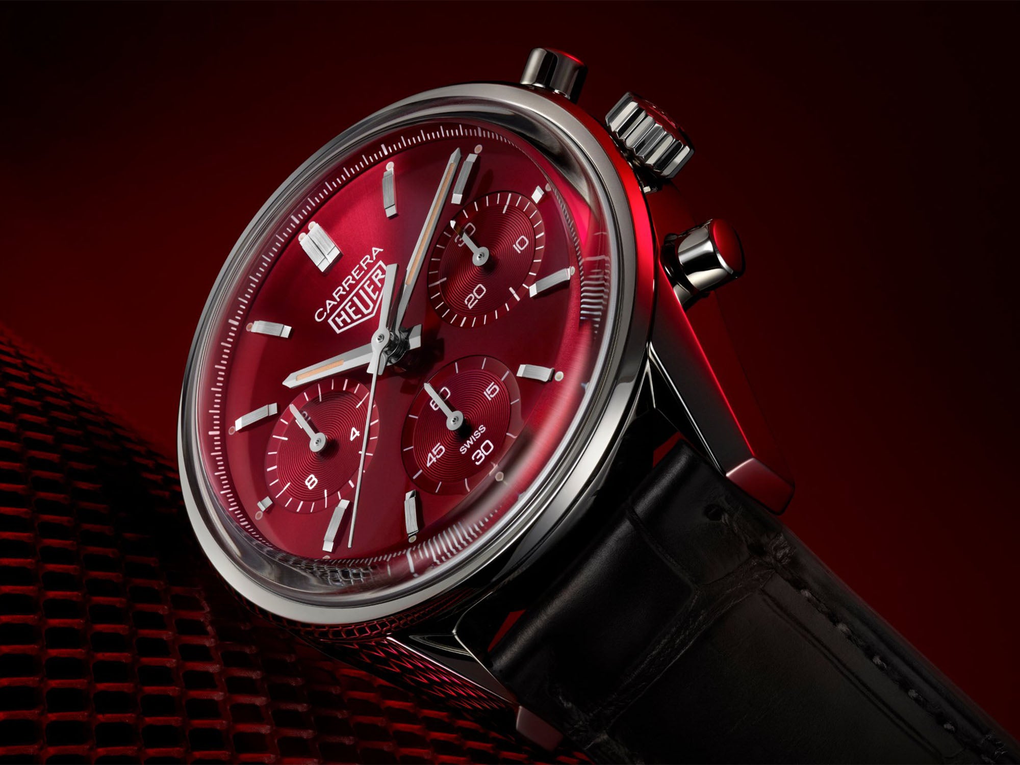 قیمت: 7,100 دلار، اندازه قاب: 39 میلیمتر، شیشه: یاقوت کبود، مقاومت در برابر آب: 100 متر، حرکت: خودکار Caliber HEUER02. TAG Heuer Carrera (تگ هویر کاررا) با نسخه محدوده با صفحه قرمز و طراحیهای جدید المانهای گذشته را تجدید کردهاست. این مدل با اشاره به طراحیهای قدیمی، جزئیات مدرن و جذابی دارد.
