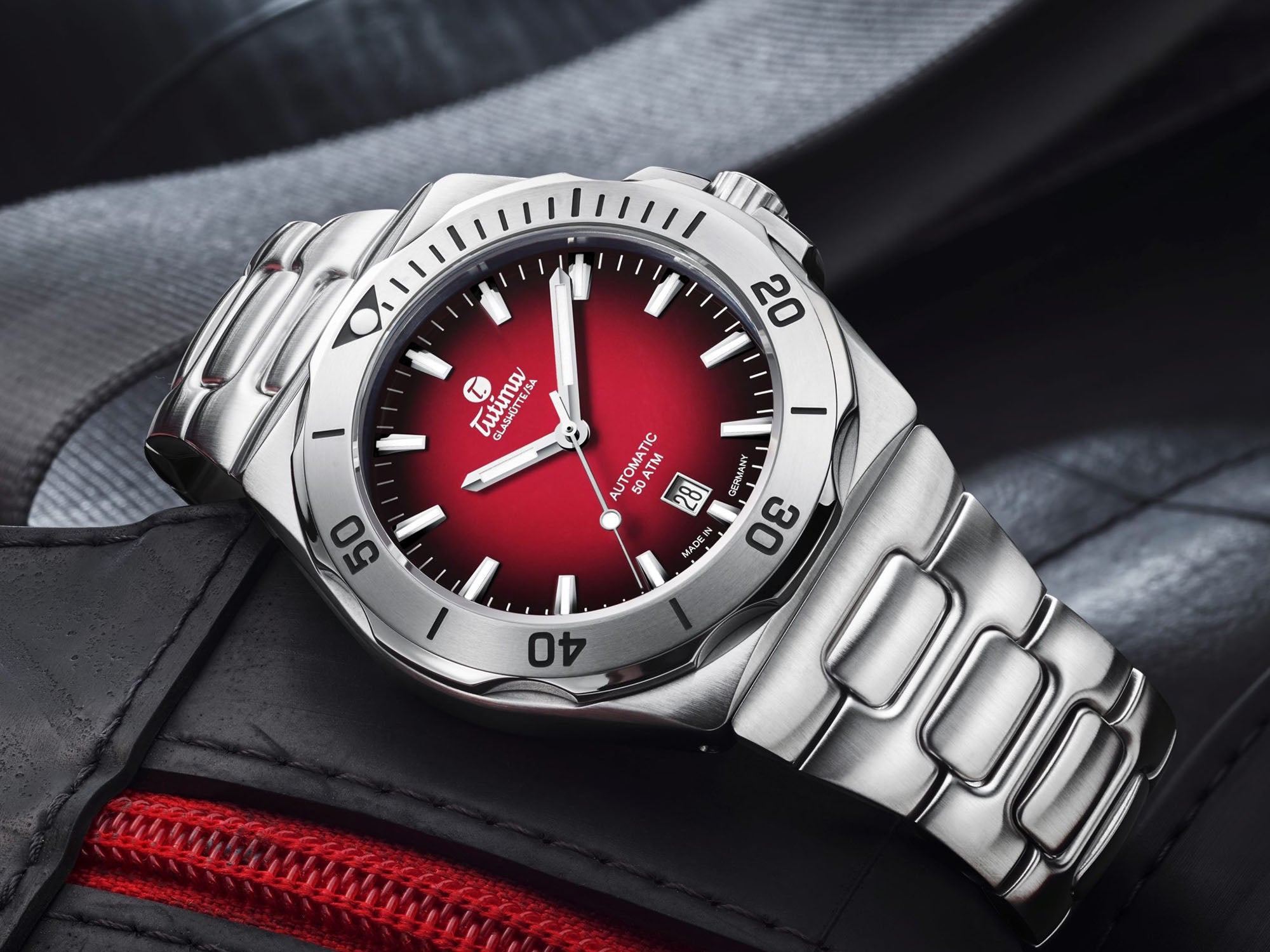قیمت: 2,350 دلار، اندازه قاب: 44 میلیمتر، ضخامت: 13 میلیمتر، شیشه: یاقوت کبود، مقاومت در برابر آب: 500 متر، حرکت: خودکار Tutima Caliber 330 (پایه ETA 2836). برند Tutima (توتیما) با مدل M2 Seven Seas (ام 2 هفت دریا) قدرت و استقامت خود را در شرایط فشار بالا، اثبات میکند. این مدل با صفحه قرمز توجه بسیاری را به خود جلب میکند.