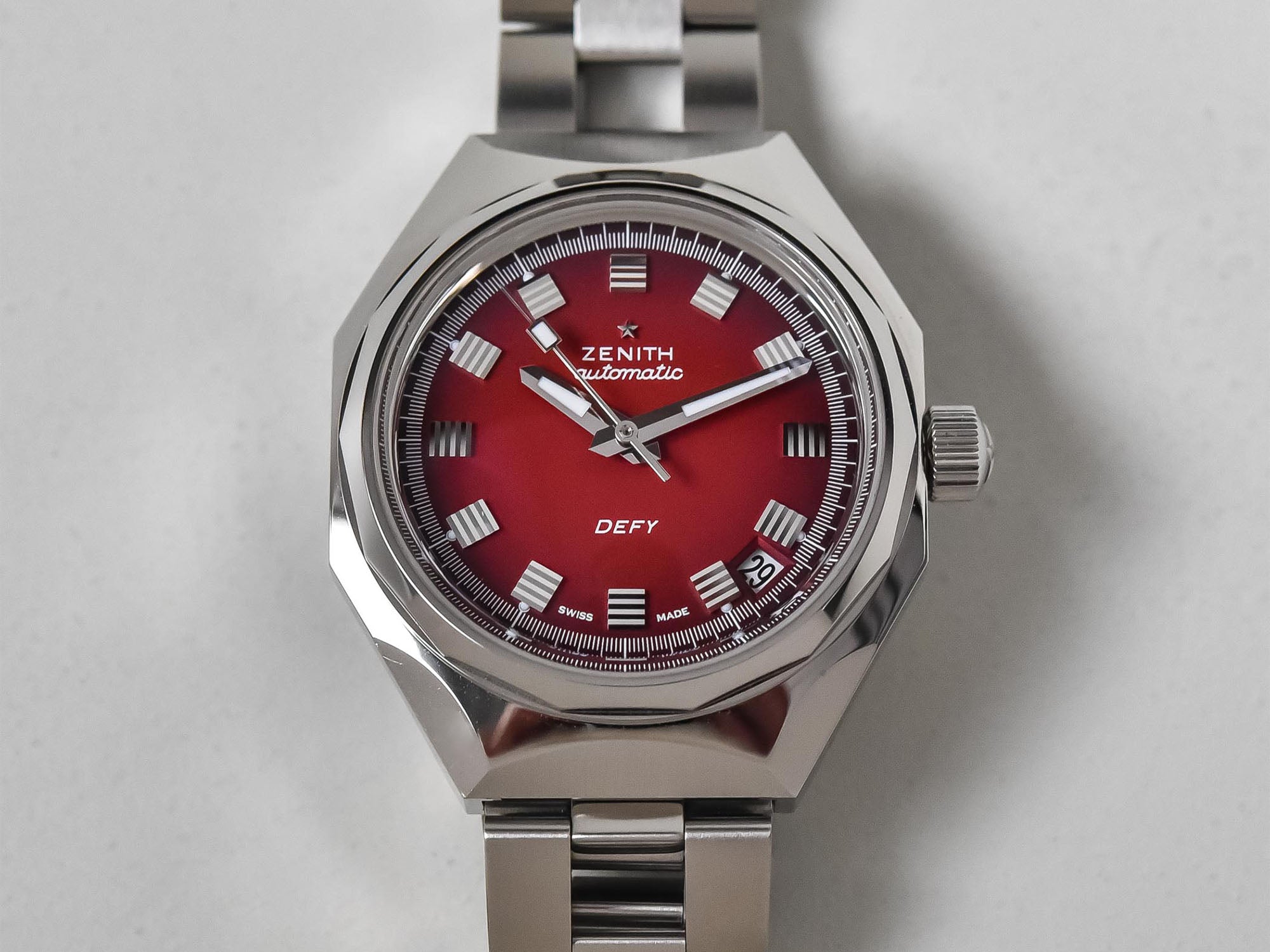 قیمت: 7,500 دلار، اندازه قاب: 37 میلیمتر، ضخامت: 11.9 میلیمتر، مقاومت در برابر آب: 300 متر، شیشه: یاقوت کبود، حرکت: خودکار Elite Caliber 670. برند Zenith (زنیت) با نسخهای بازتولید شده از مدل Defy (دفای) با طراحی صفحه قرمز، به زیباییهای گذشته بازگشته و عصر جدیدی از طراحی ساعتها را معرفی کردهاست.
